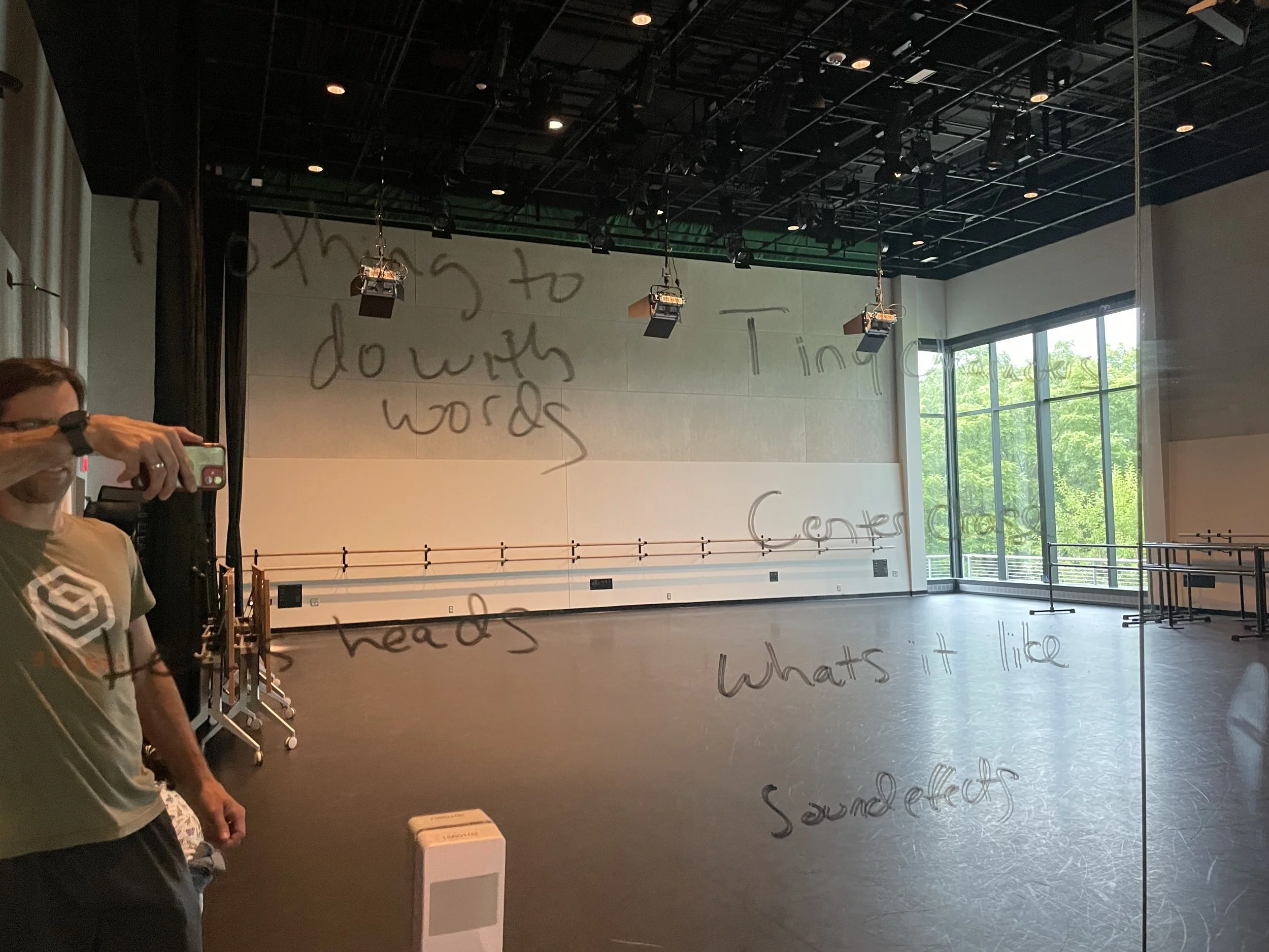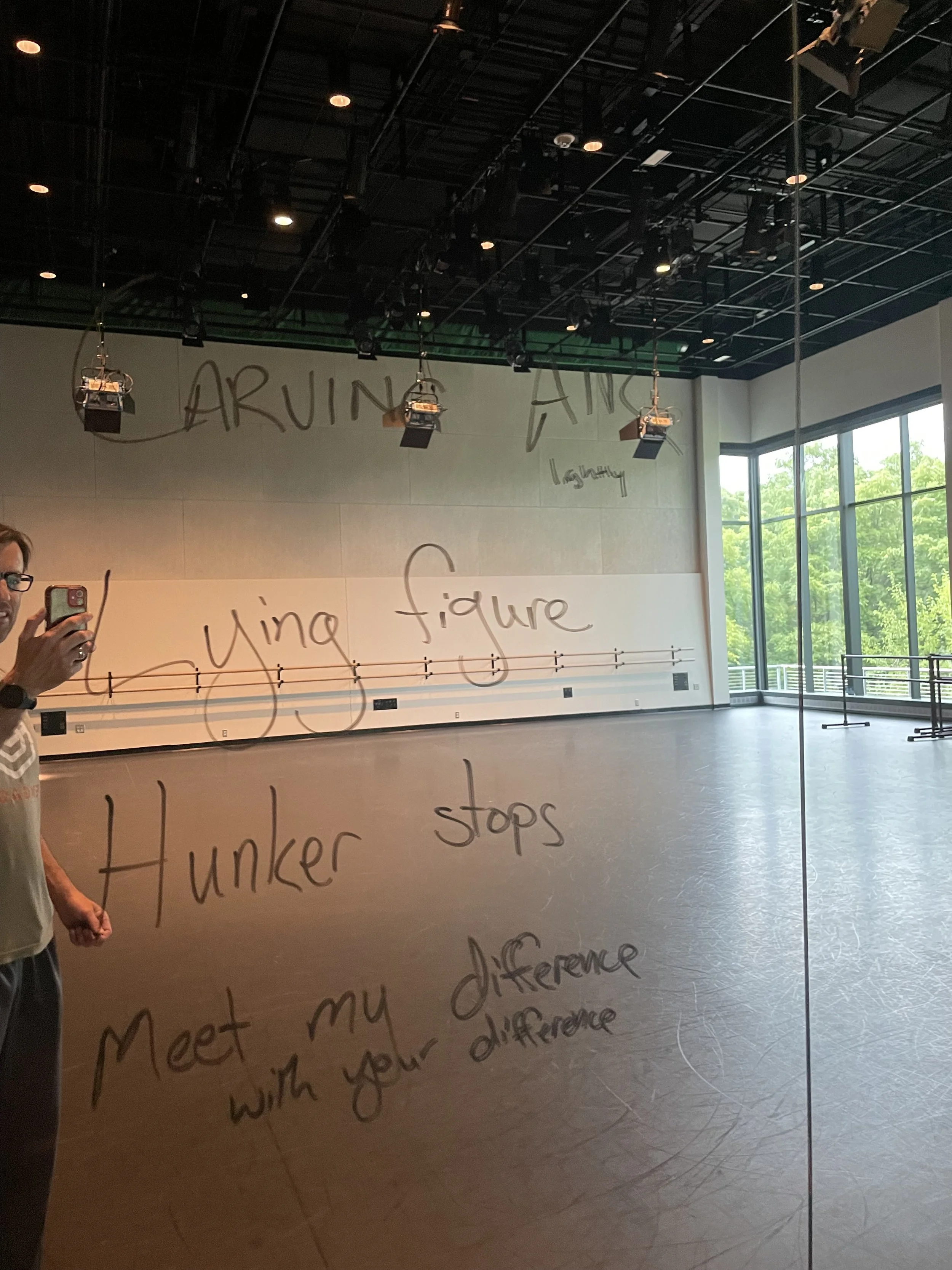 A second residency in Ann Arbor brought more shape and development, including a fecund work session with text written on mirrors (images below). Amy Chavasse watched a run of the work, and a conversation following yielded the title.